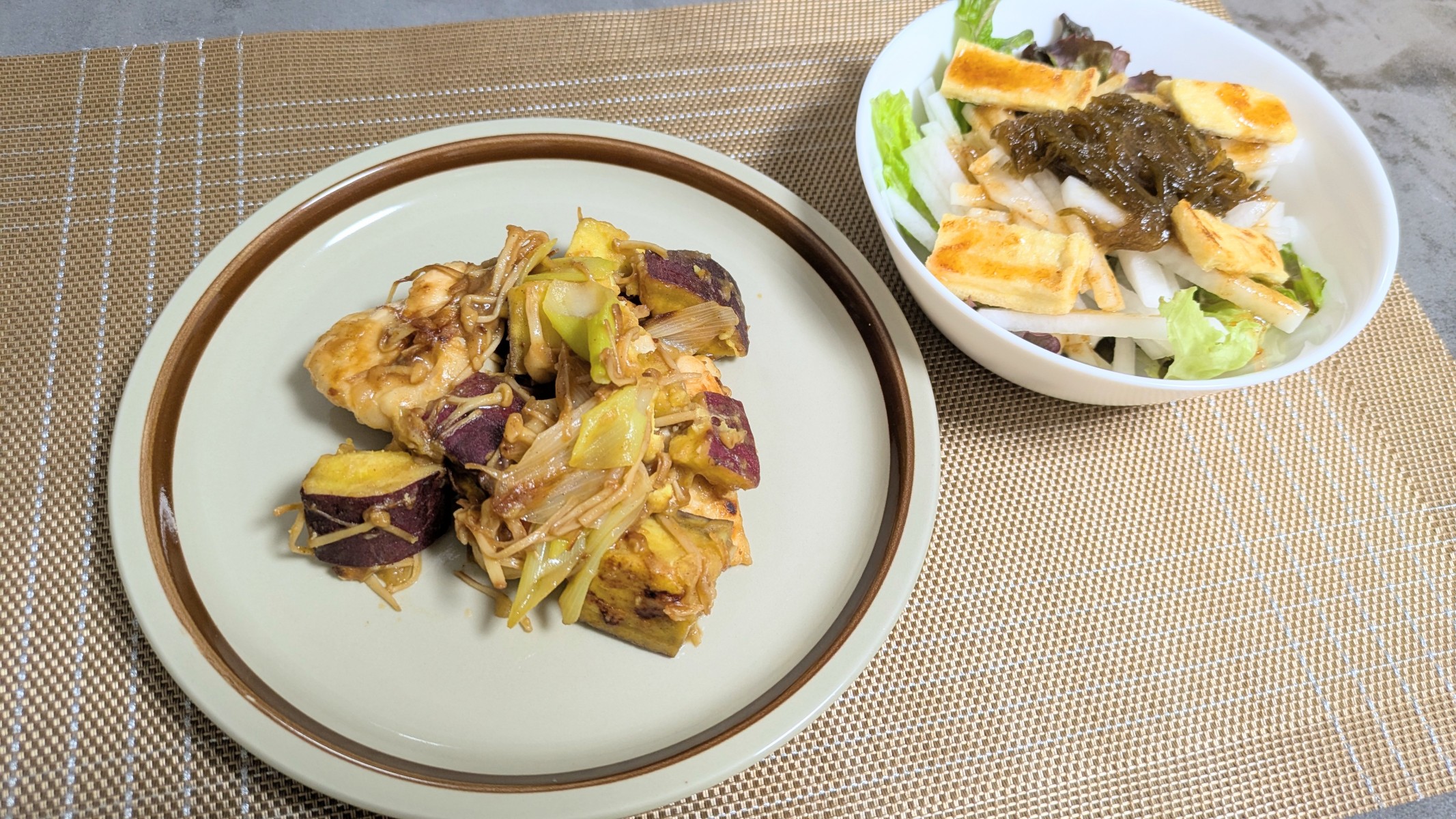 さつま芋の甘みとねぎ塩の香ばしさが鶏肉によく絡んで、お箸が止まりませんでした!